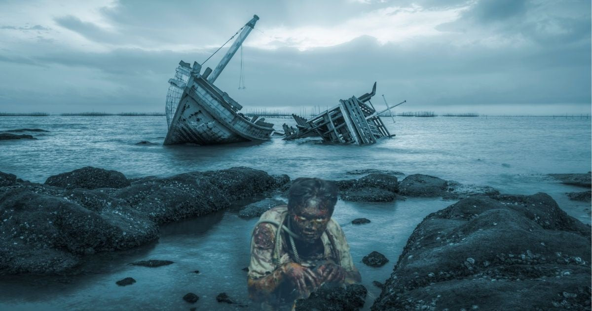Aghast, we weaved between them. Recognised, despite the decay, half-familiar faces. Fathers, sons, brothers... Tracked, with a jolt, the unearthed dead's direction of travel. We helped them into the ocean and onto the empty, skeletal hulk.