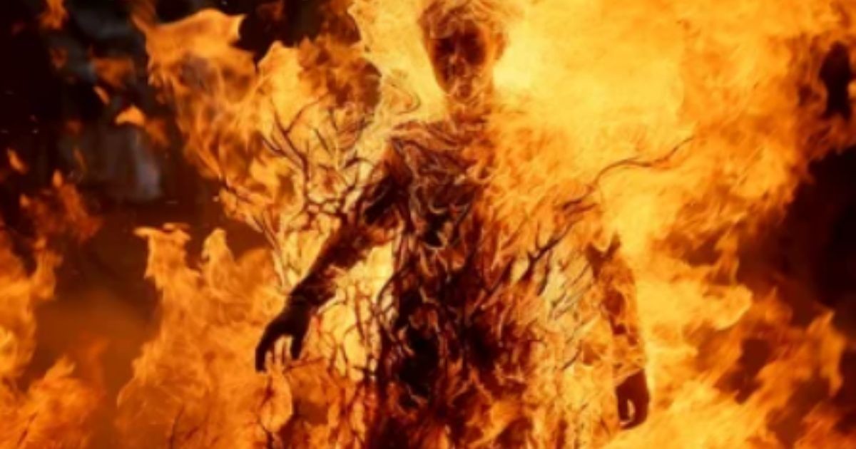 The flames roll over his flesh, consuming him with a hunger that will never be satisfied.