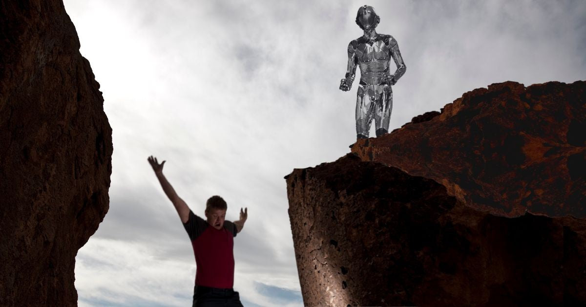 "You need more lessons," the android yelled as Sid plummeted to his death on the ground below, unable to finish his sentence about buying an airplane.