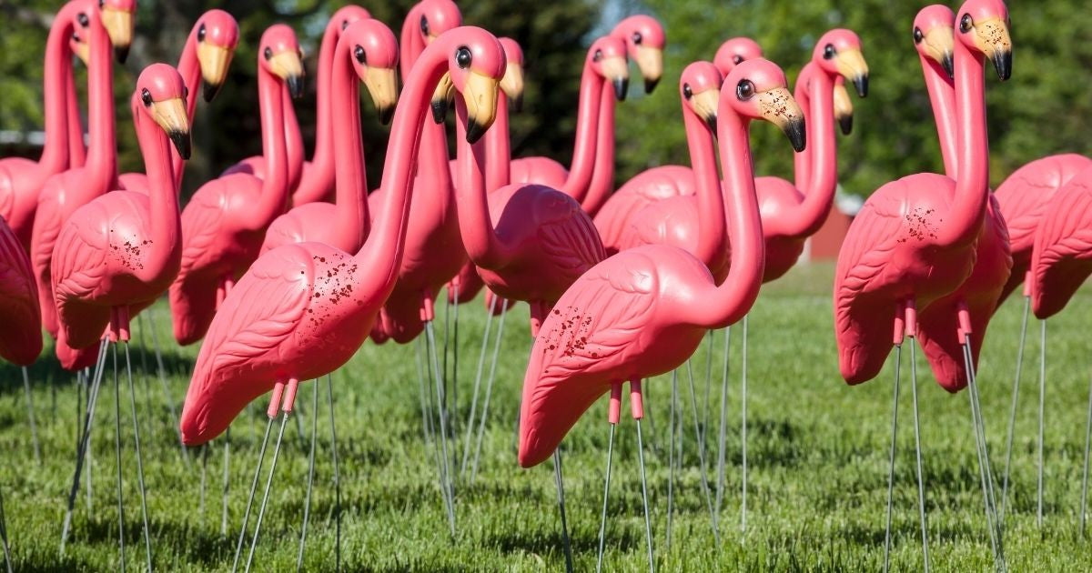 Although the flamingos were only plastic lawn ornaments, they were Mary's pride and joy.