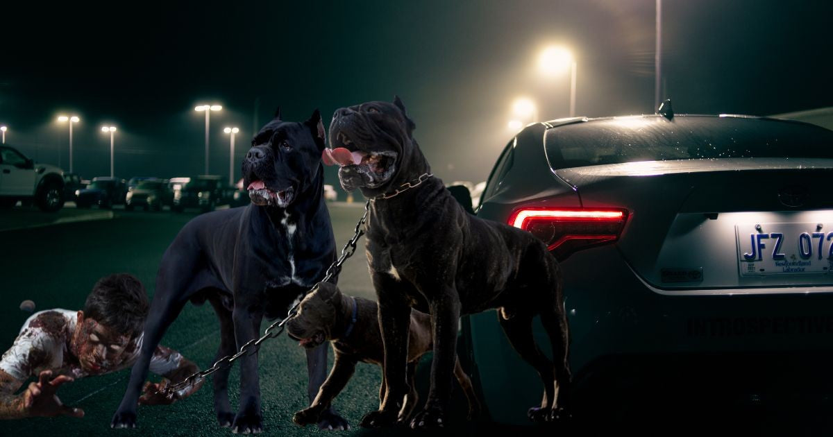 The pack rounded the corner, thundering into the haze of the streetlight. As it closed on me, I could make out individual forms; dog-like, but far too big for the leashes they strained against—and their eyes, too much like embers. Behind them dragged a corpse, still clutching the leashes.